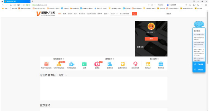 首先,我们要知道阿里V任务的进入渠道是在哪里,我们可以直接打开浏览器,在地址栏里面输入v.taobao.com,通过这个链接就可以直接进入到我们阿里V任务的官方网站。