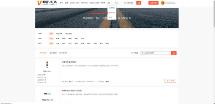 当然,我们也可以自己发布任务,当我们发布任务以后,任务就会在商家广场里面进行展示,通过这种展示以后,在有对应需求的人看到这个活动广告以后,就会主动联系,来商讨合作的事情,所以这个平台还是比较方便的,通过进行资源人群的推广,那么就肯定会对我们的宝贝有加权提升作用